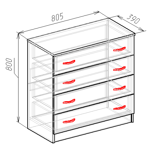 Материал: каркас/фасад – ламинированная ДСП, кромка – ПВХ 0,45÷1мм, ручки – металл.