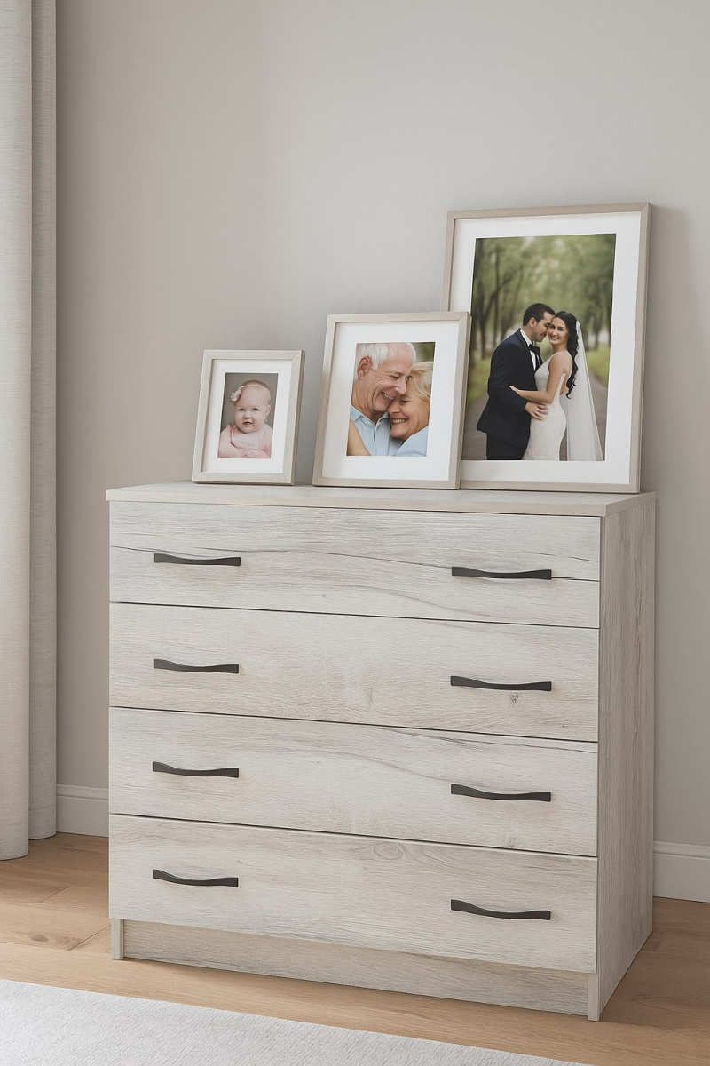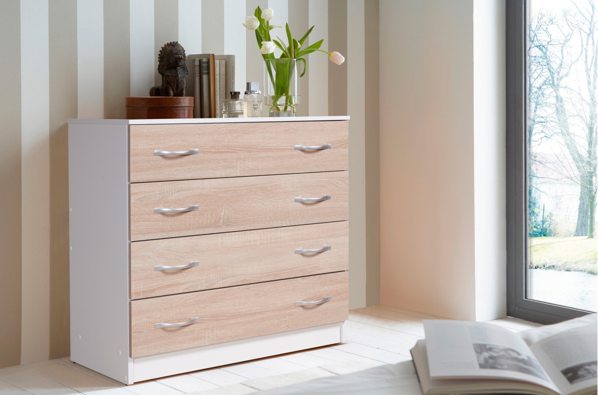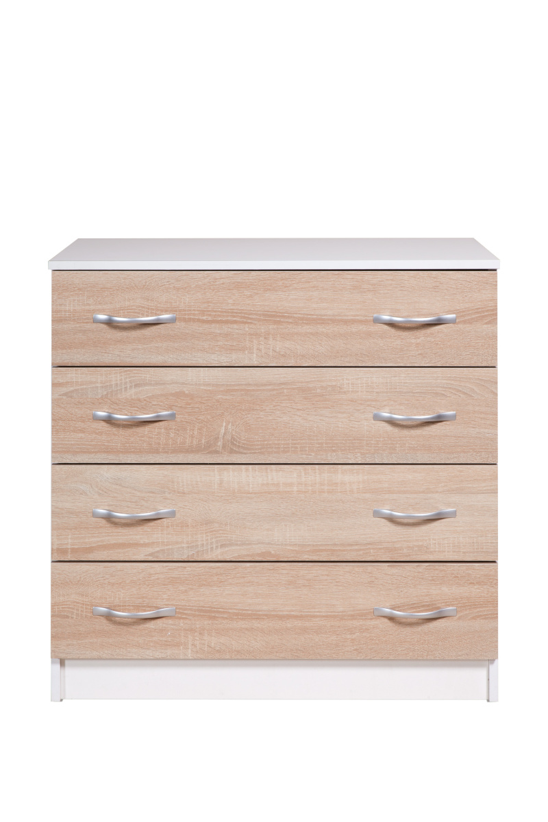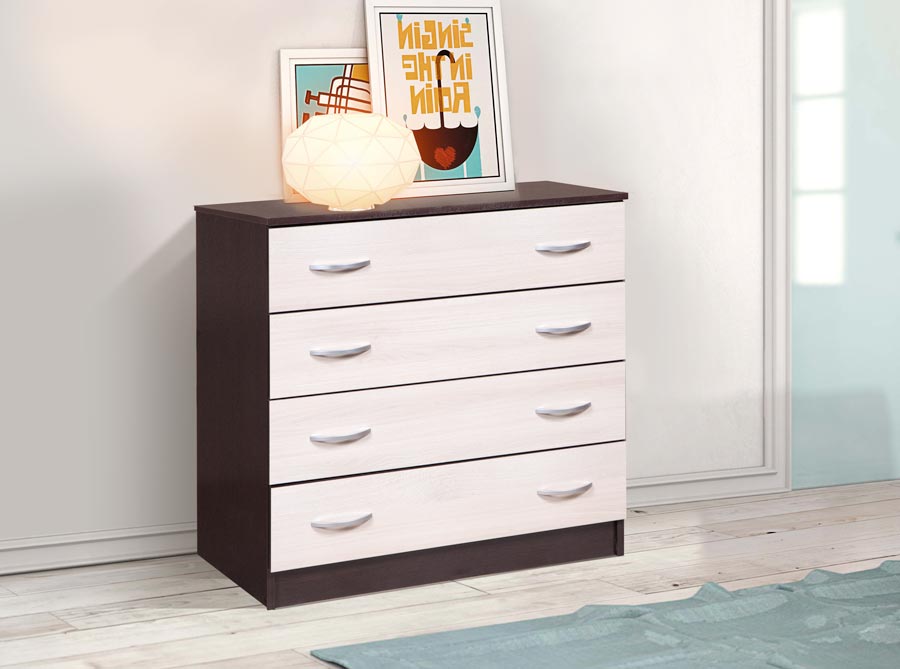 Комод "Бонн" - комфортный атрибут любого интерьера. Компактный, с четырьмя вместительными выдвижными ящиками комод отлично подходит для идеальной комплектации гостиной, спальни или детской. На крышке комода Вы сможете разместить светильник и декоративные элементы, а в ящиках удобно разложить вещи «по назначению».