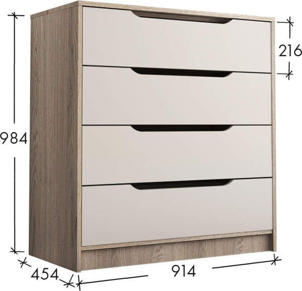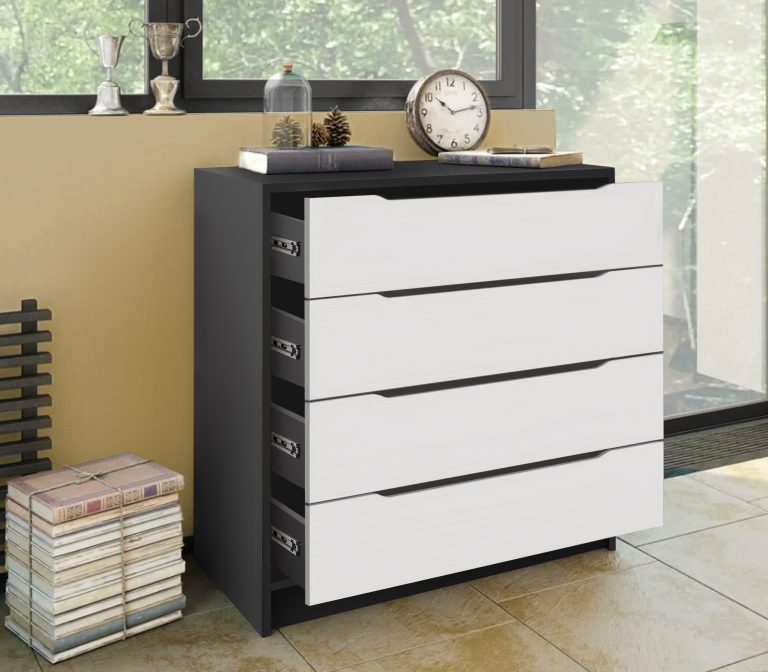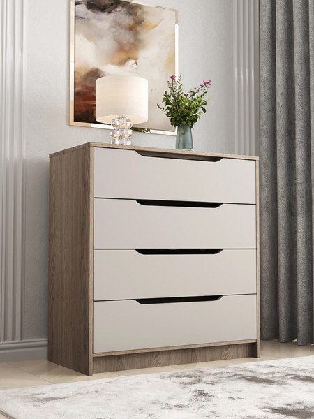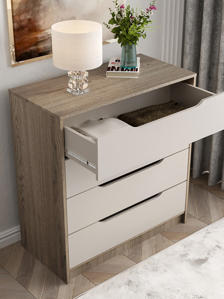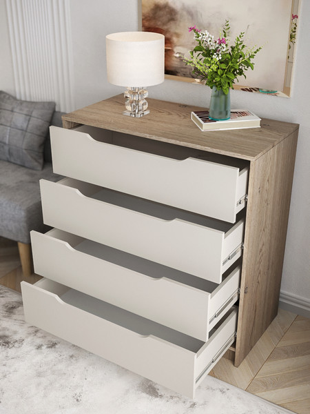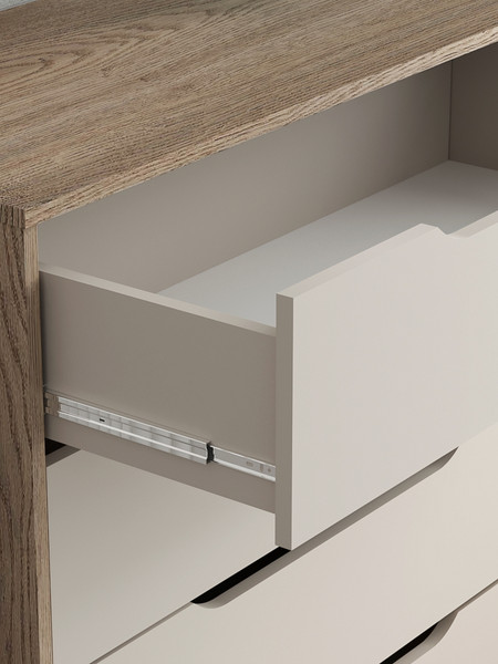 Компактный комод с интегрированными ручками отлично впишется в интерьер спальни или прихожей.