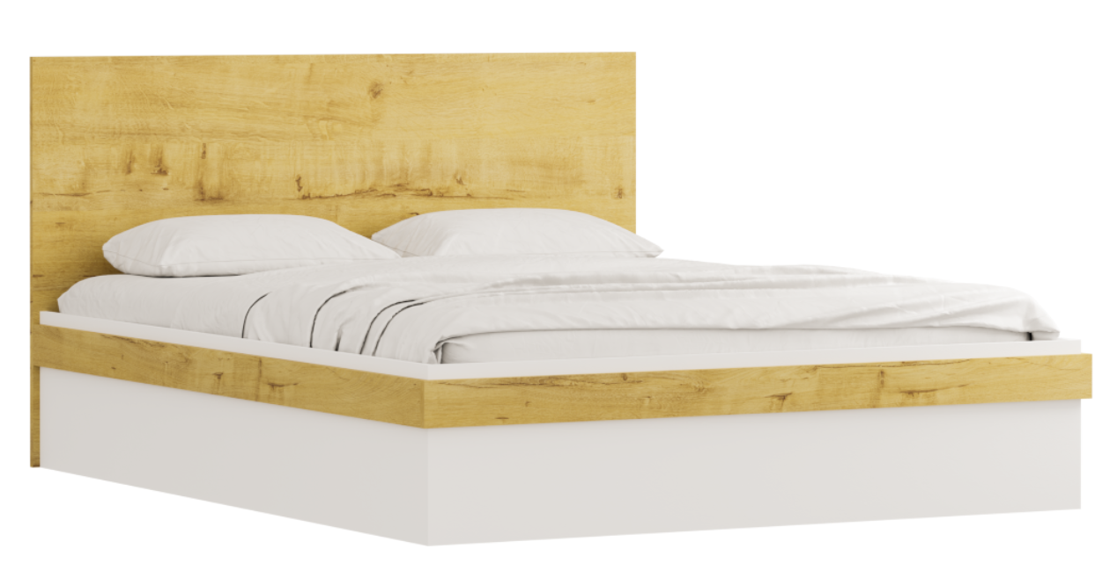 Кровать состоит из ножной и утолщенной головной спинок, прямоугольной формы, соединенных между собой двумя боковыми стенками. К ножной спинке и боковым стенкам крепятся декоративные планки. Ножная спинка пониженной высоты. Корпус кровати установлен на подпятниках. Донья кровати крепятся по периметру к корпусу при помощи шурупов. Внутренняя часть кровати разделена перегородкой, делящей объем на два отделения для хранения. С одной стороны-две стенки, прикрепленных к перегородке и головной спинке кровати. Стенки и перегородка используются как основа под вкладной металлический каркас с гибким основанием, из гнутокленных пластин без опор. Каркас кровати оснащен подъемным механизмом, закрепленным с внутренней стороны на боковых стенках и к металлическому каркасу кровати.