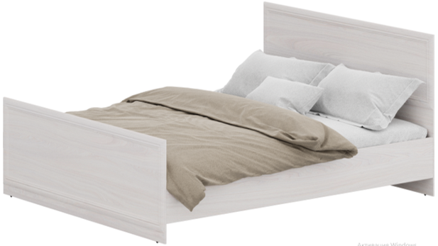 Кровать состоит из ножной и головной спинок , прямоугольной формы, имеющих декоративные накладки, имитирующих рамку, двух царг, с вкладным металлическим каркасом, с гибким основанием из гнутоклееных пластин, установленный на четырех металлических опорах