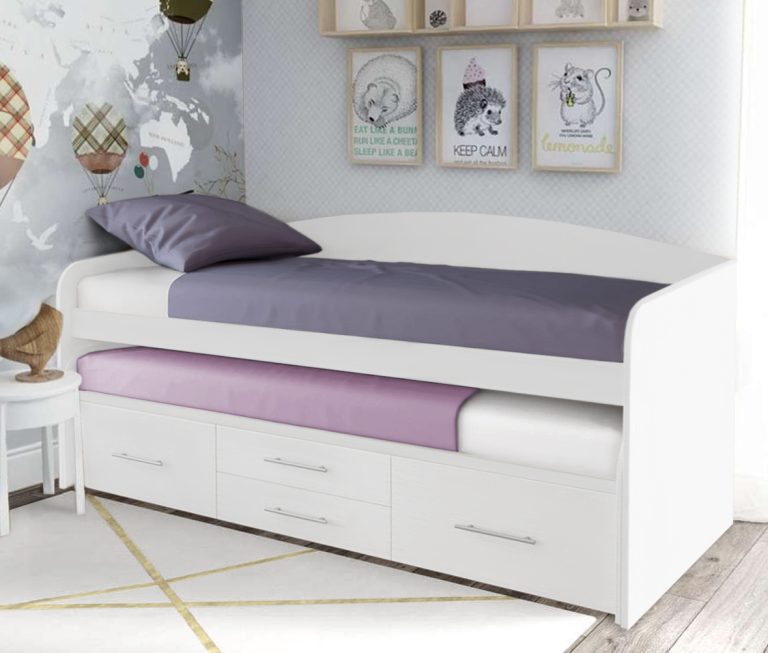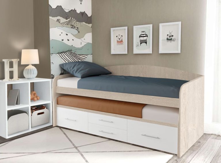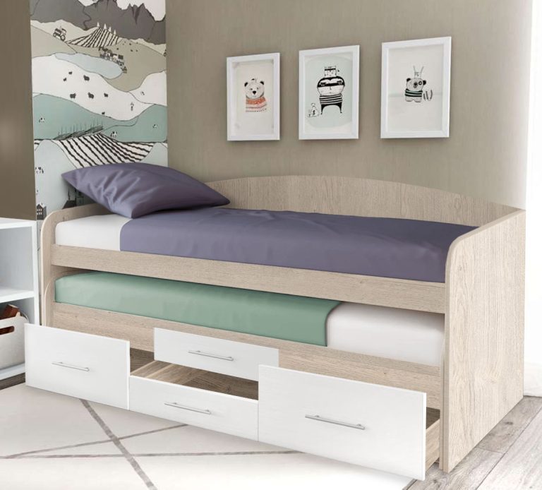 Выдвижные кроватки, с двумя спальными местам – экономит пространства в детской.