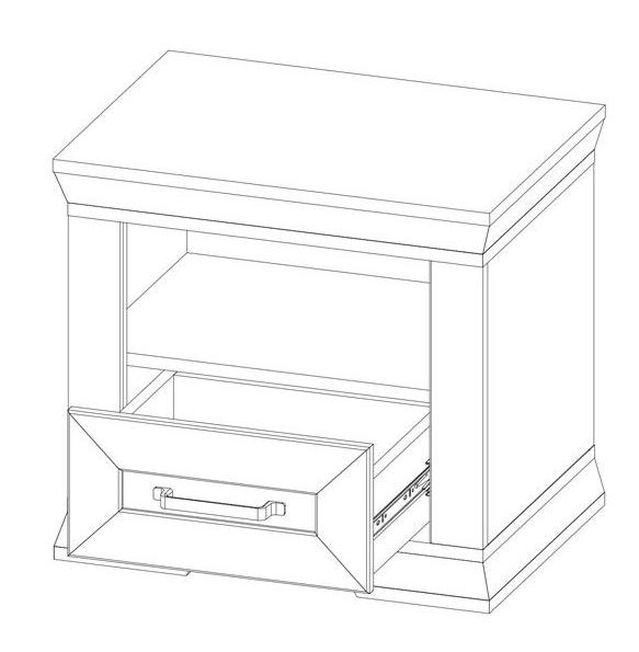 Разделена на 2 отделения: открытое отделение и выдвижной ящик на металлических шариковых направляющих;