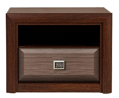 Тумба имеет вместительную полку и выдвижной ящик, что гарантирует пространство для хранения вещей. Верхняя поверхность может быть использована как дополнительное место для книг, часов, цветов и других элементов декора. Сочетание темно и светло-коричневых цветов делает тумбочку универсальной для любого интерьера.