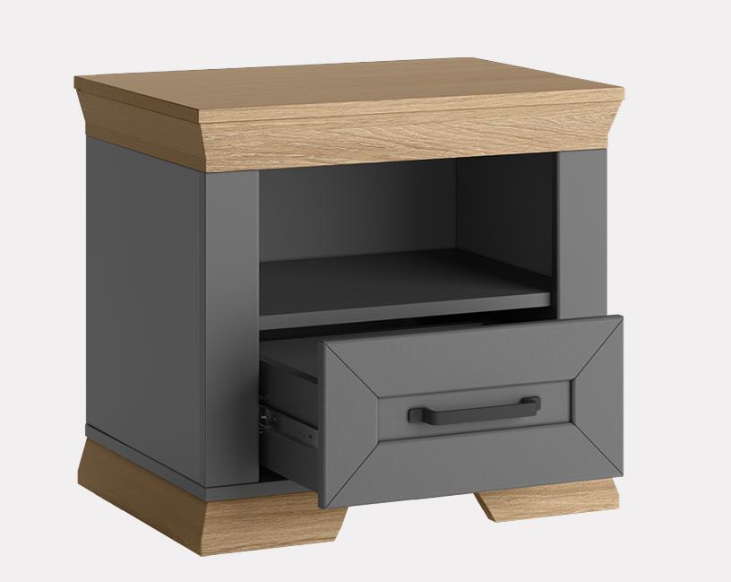Разделена на 2 отделения: открытое отделение и выдвижной ящик на металлических шариковых направляющих, в которых удобно хранить книги, журналы и другие мелкие предметы;