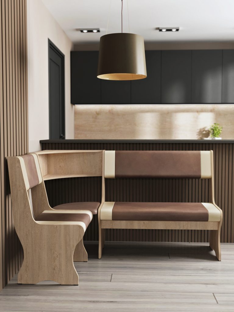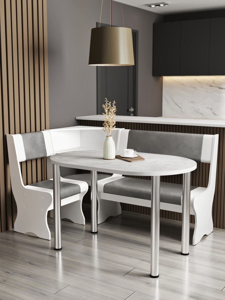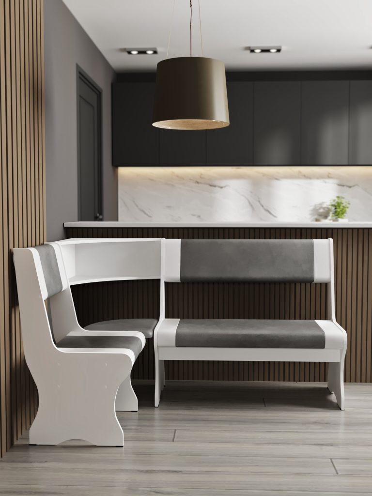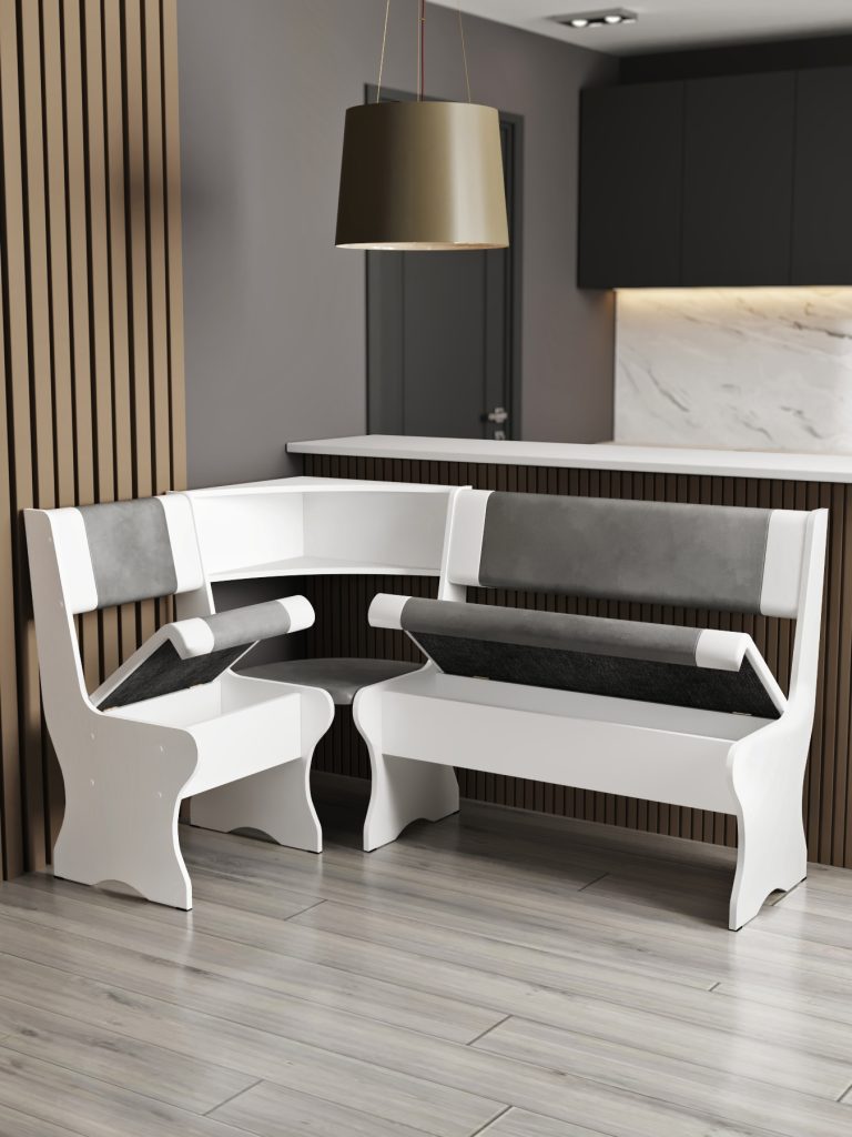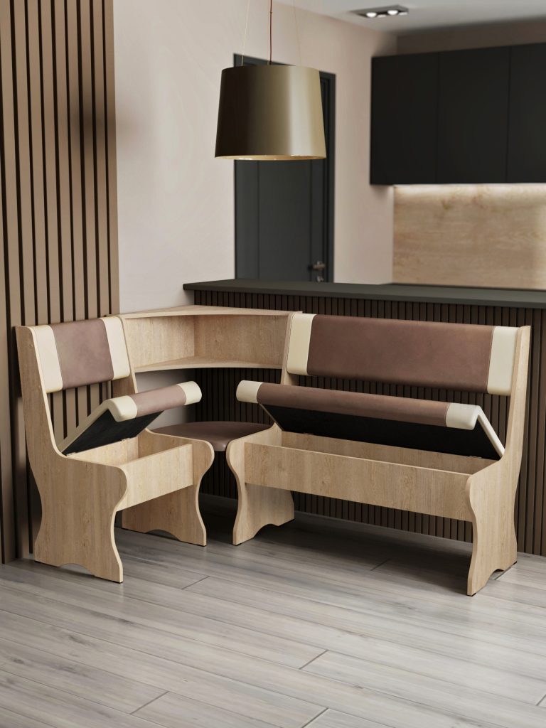 Под мягкими сиденьями расположены ящики для хранения белья, посуды и другого инвентаря вашей кухни.