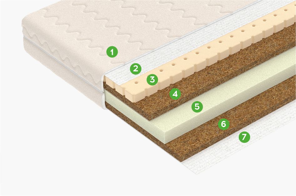 2,7. Хлопковое полотно. Натуральный материал, состоящий из спрессованных слоев хлопкового волокна. Применяется для водной и воздушной регуляции, обеспечивает комфортный микроклимат.