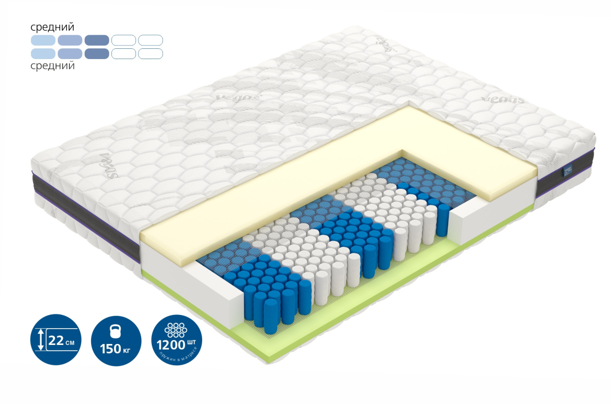 Надежный, прочный и при этом очень удобный матрас, созданный с использованием высокотехнологичных материалов: пены с памятью формы и Vegaflex Pro с повышенной эластичностью. Выдерживает нагрузки до 150 кг и создает приятный обволакивающий эффект.