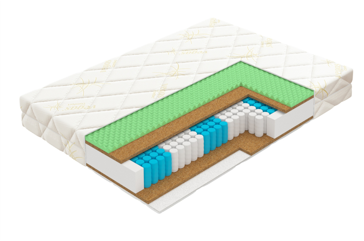 Среднежесткий матрас с разными поверхностями сторон: двойной слой кокосовой койры надежно поддерживает позвоночник, а технологичная пена с микромассажным эффектом бережно расслабляет и снимает нагрузку с мышц и суставов.