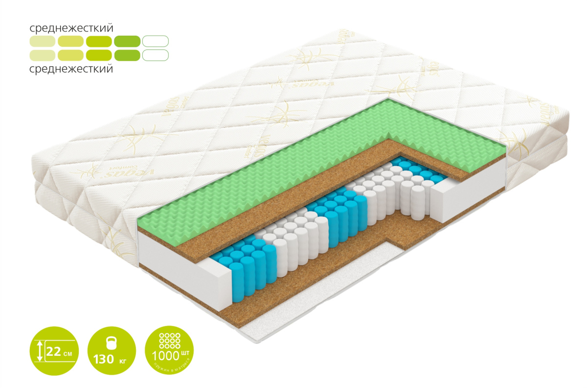 Количество пружин в двуспальном матрасе: 1000