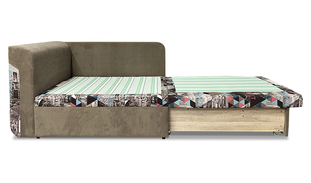 Подойдет для любого уголка детской комнаты, ведь она такая маленькая, но, когда ее раскладываешь для сна, спальное место увеличивается до 2-х метров. Огромное количество обивочного материала поможет сделать тахту мега стильной, и подходящей даже к самому трендовому интерьеру.
