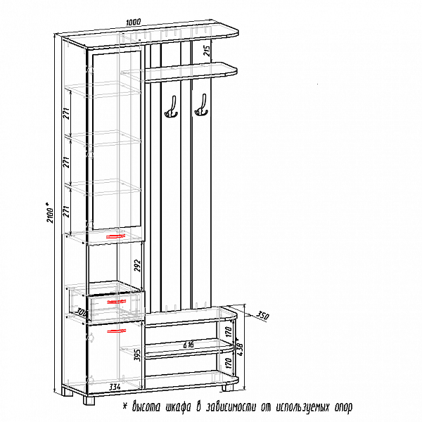 Материал: каркас/фасад – ламинированная ДСП, кромка - ПВХ 0,45÷1мм, ручки – металл, опоры - пластик