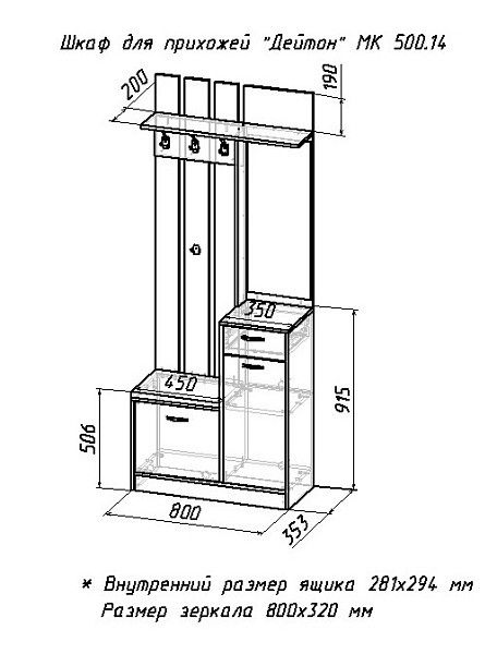 Шкаф для прихожей Дейтон небольшой, но функциональный. В нем есть все, что необходимо для комфорта в прихожей.