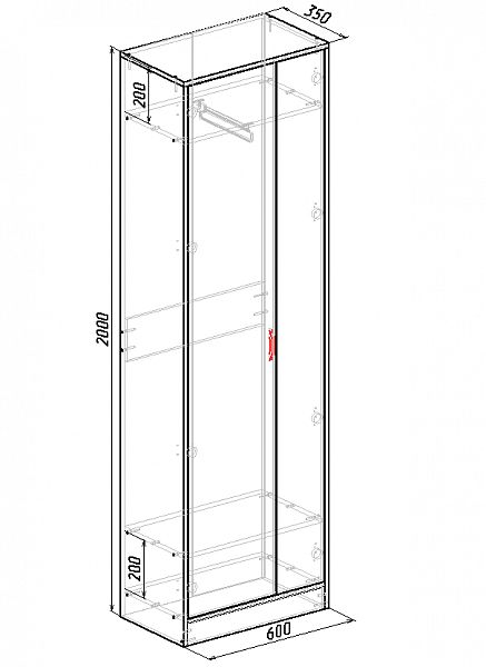 Наполнение: штанга (выдвижная), полки (2 шт.)