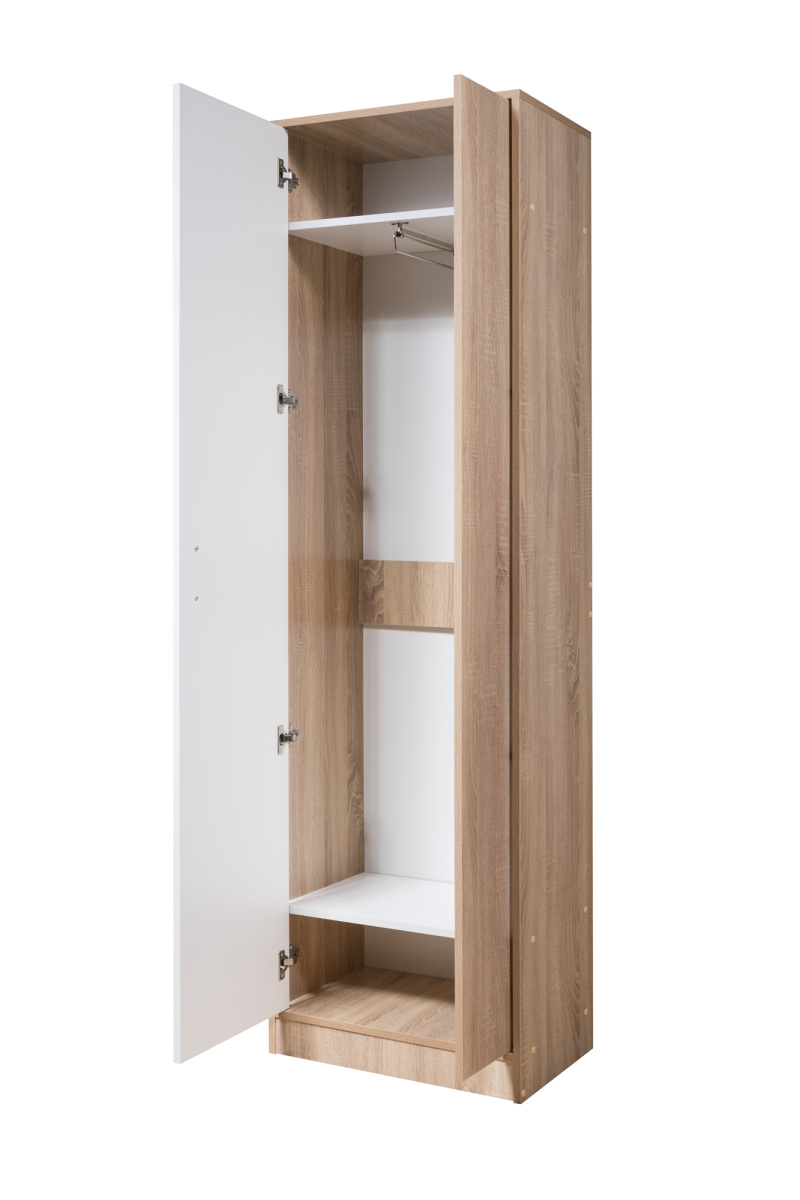 Компактный шкаф "Порто-1" обеспечит порядок в помещении без его загромождения. Классический двустворчатый шкаф с распашными дверями оборудован выдвижной штангой для вешалок, атресольной и нижней полками.