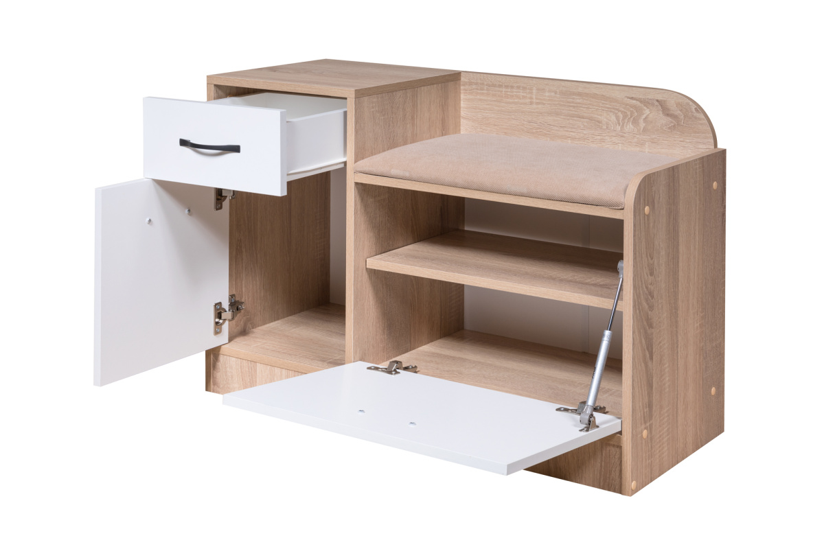 Элегантная и компактная скамья "Порто-7" послужит и удобной обувницей, и украшением прихожей. Скамья оборудована вместительным двухсекционным отделение для обуви за откидной дверью, отделением для хранения высокой обуви за распашной дверью и выдвижным ящиком для хранения мелочей.