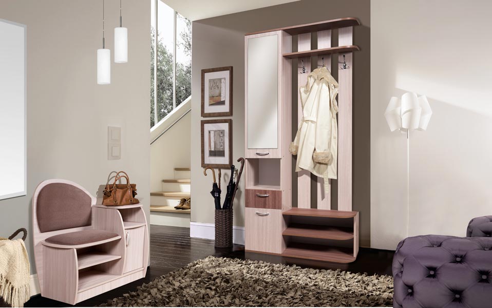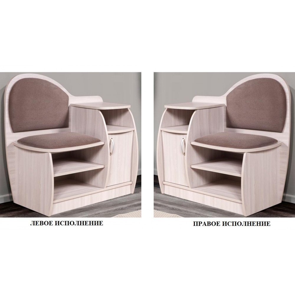 Элегантная, компактная скамья послужит обувницей, банкеткой и украшением прихожей. Небольшая, но функциональная модель, оснащенная полками и нишей за дверцей.