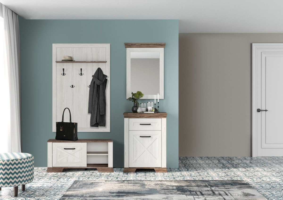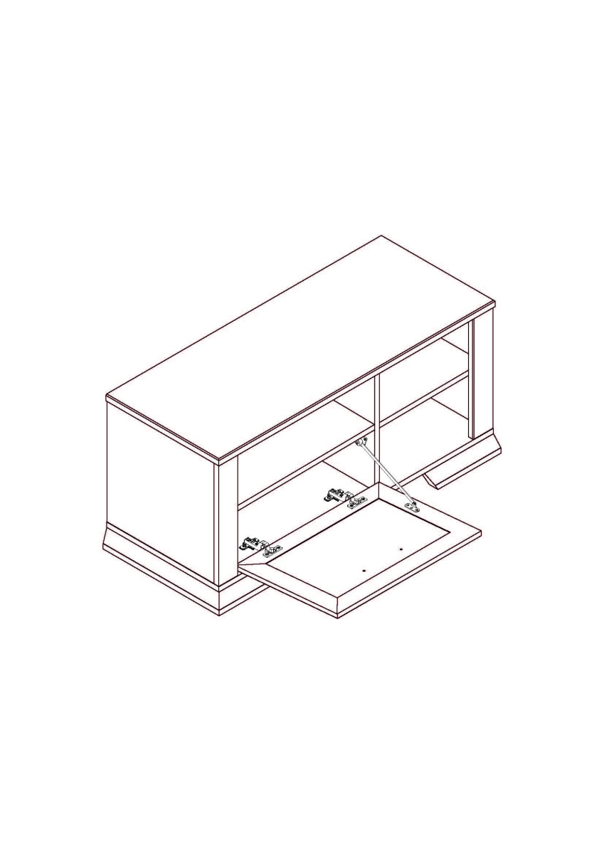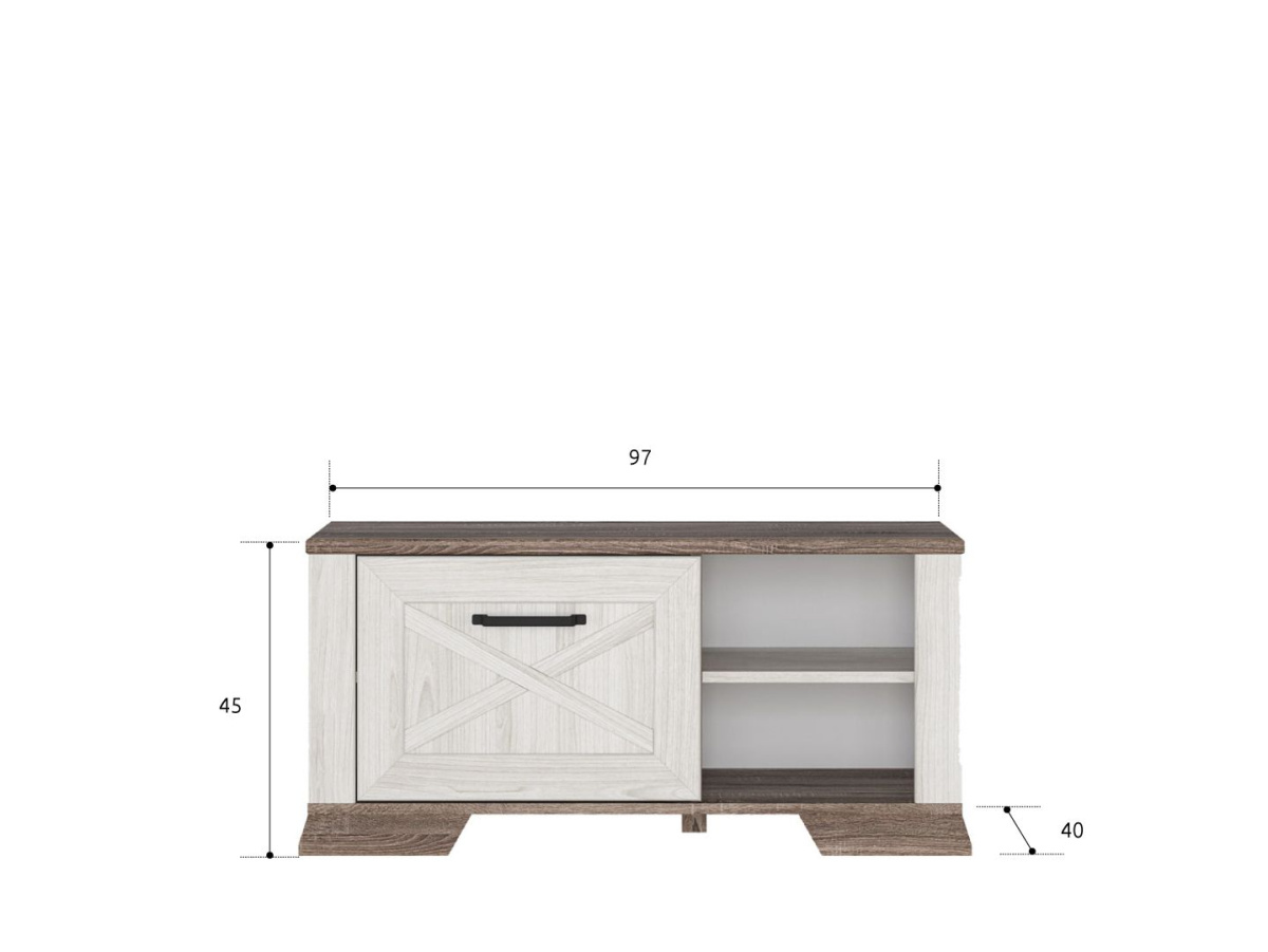 Слева — откидная дверь, за которой расположена полка для обуви; справа — 2 открытые ячейки для хранения;
