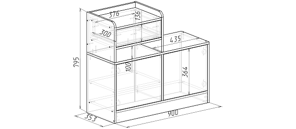 Габариты: 900х353х795 мм
