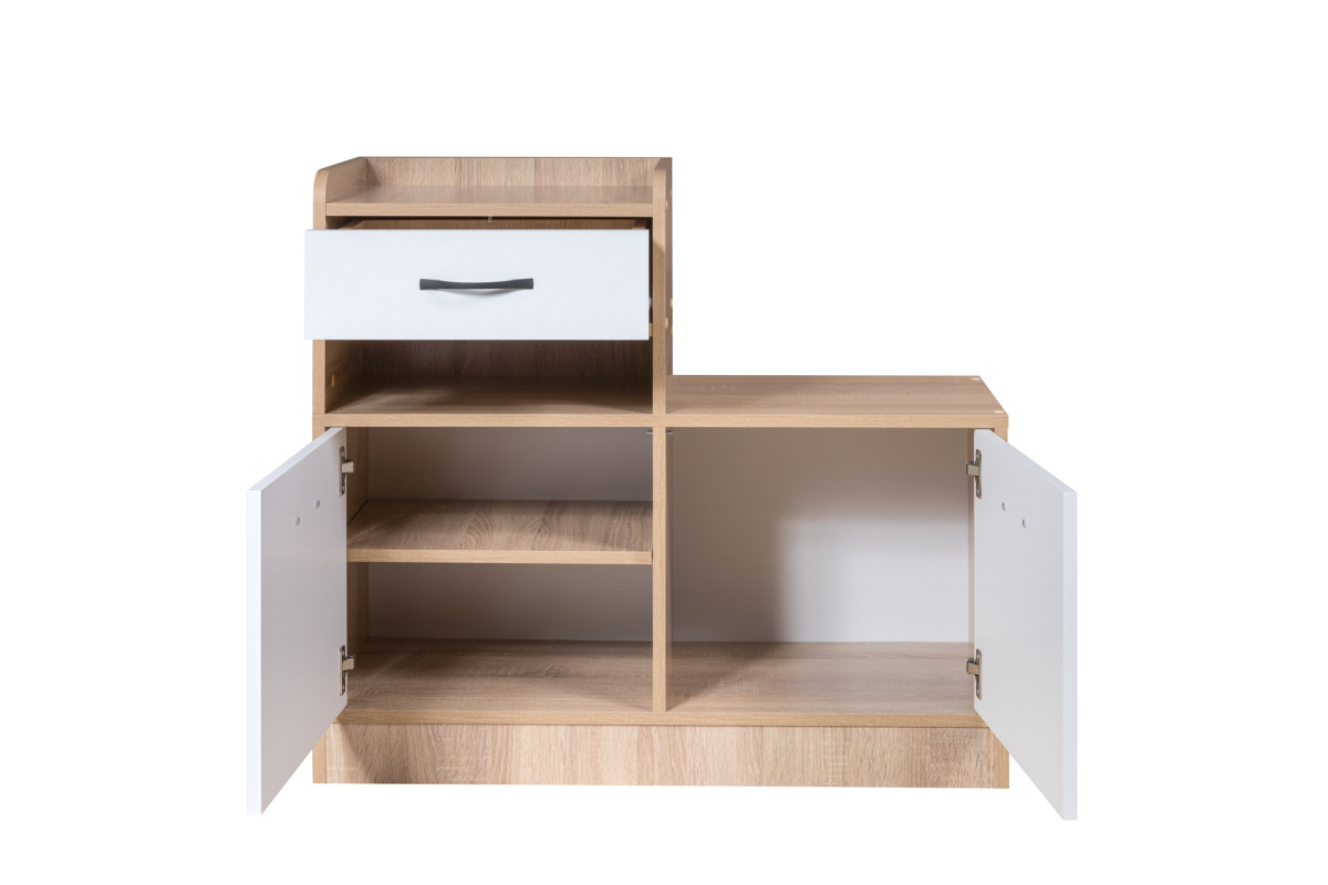 Тумба для обуви "Порто-5" будет радовать вас лаконичным дизайном и продуманным комфортом каждый день. Тумба имеет вместительные ниши для обуви за распашными дверями и выдвижной ящик. Под ящиком обустроена открытая ниша. Тумба "Порто-5" – порядок и красота в прихожей. Исполнение тумбы универсальное.