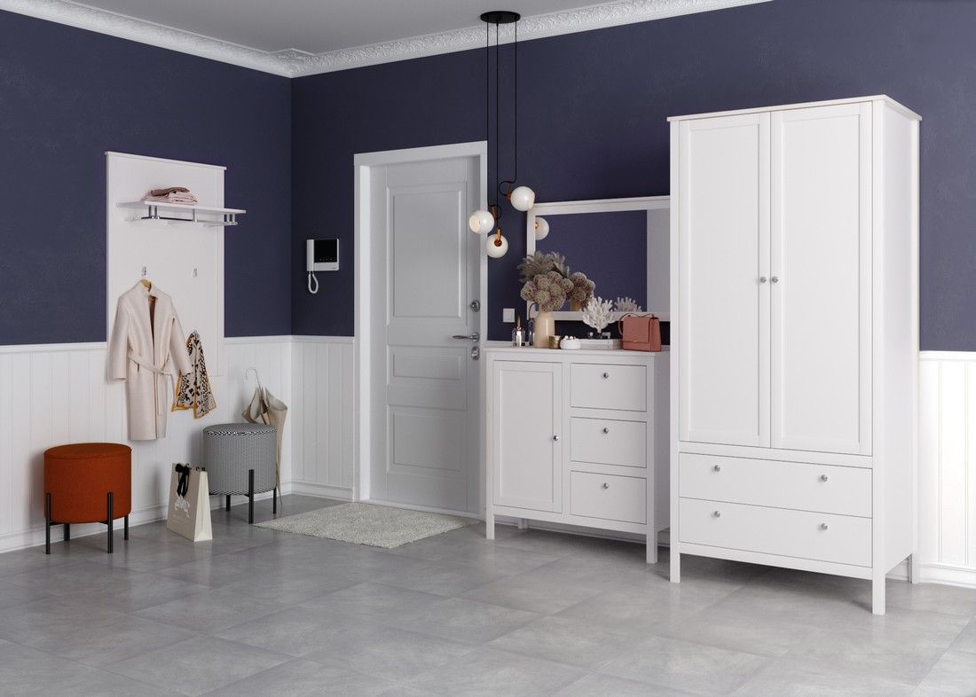 Вешалка представляет собой щит, на который крепится полка, составная вешалка и 4 крючка;