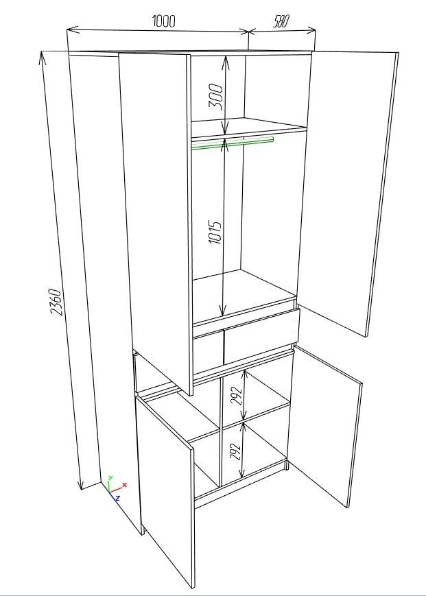 Габариты: 1000 x 2365 x 580 мм (Ш/В/Г)