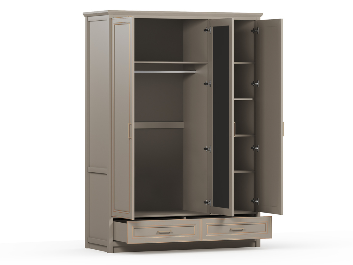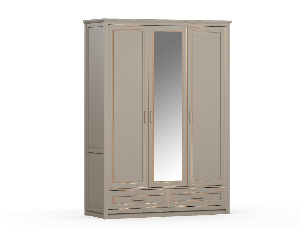 Слева и справа расположены глухие распашные двери; в центральной части — дверь с зеркалом;