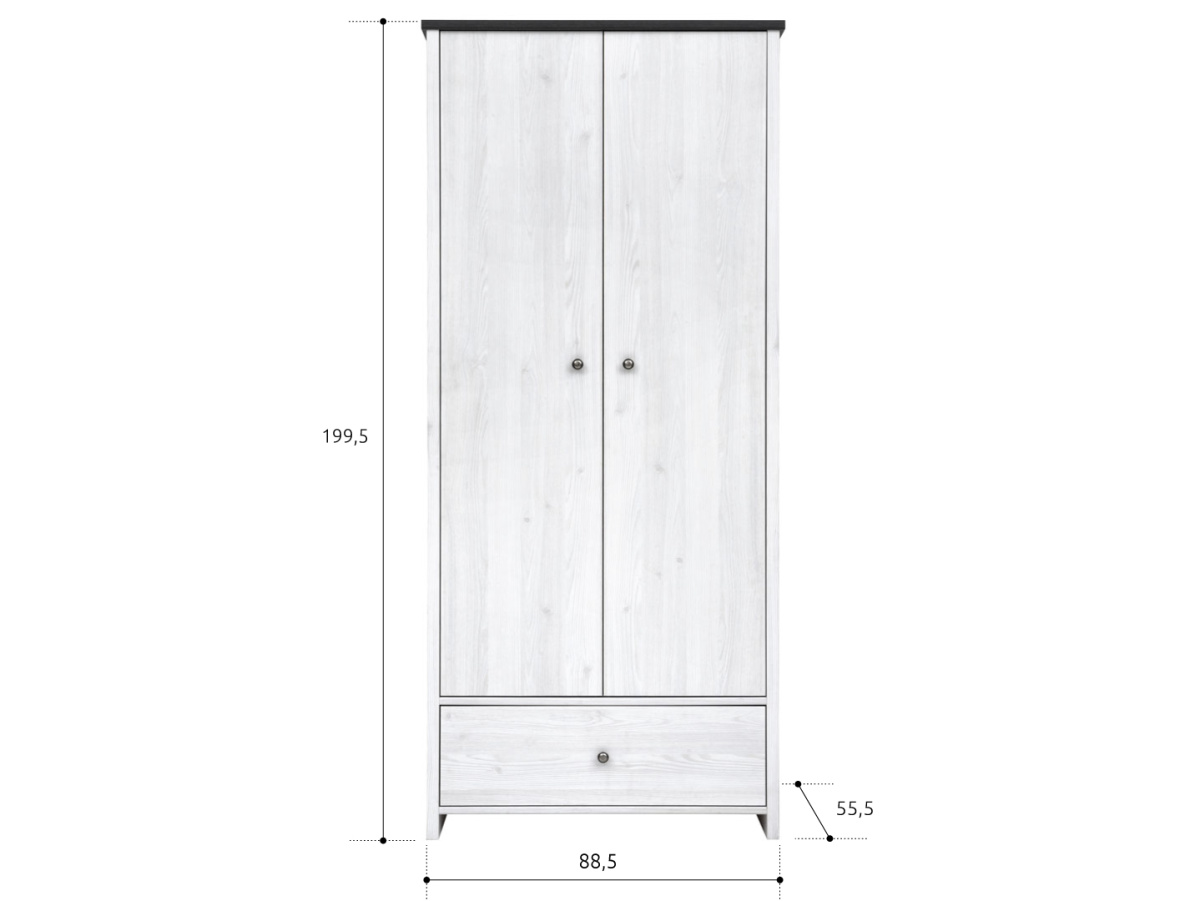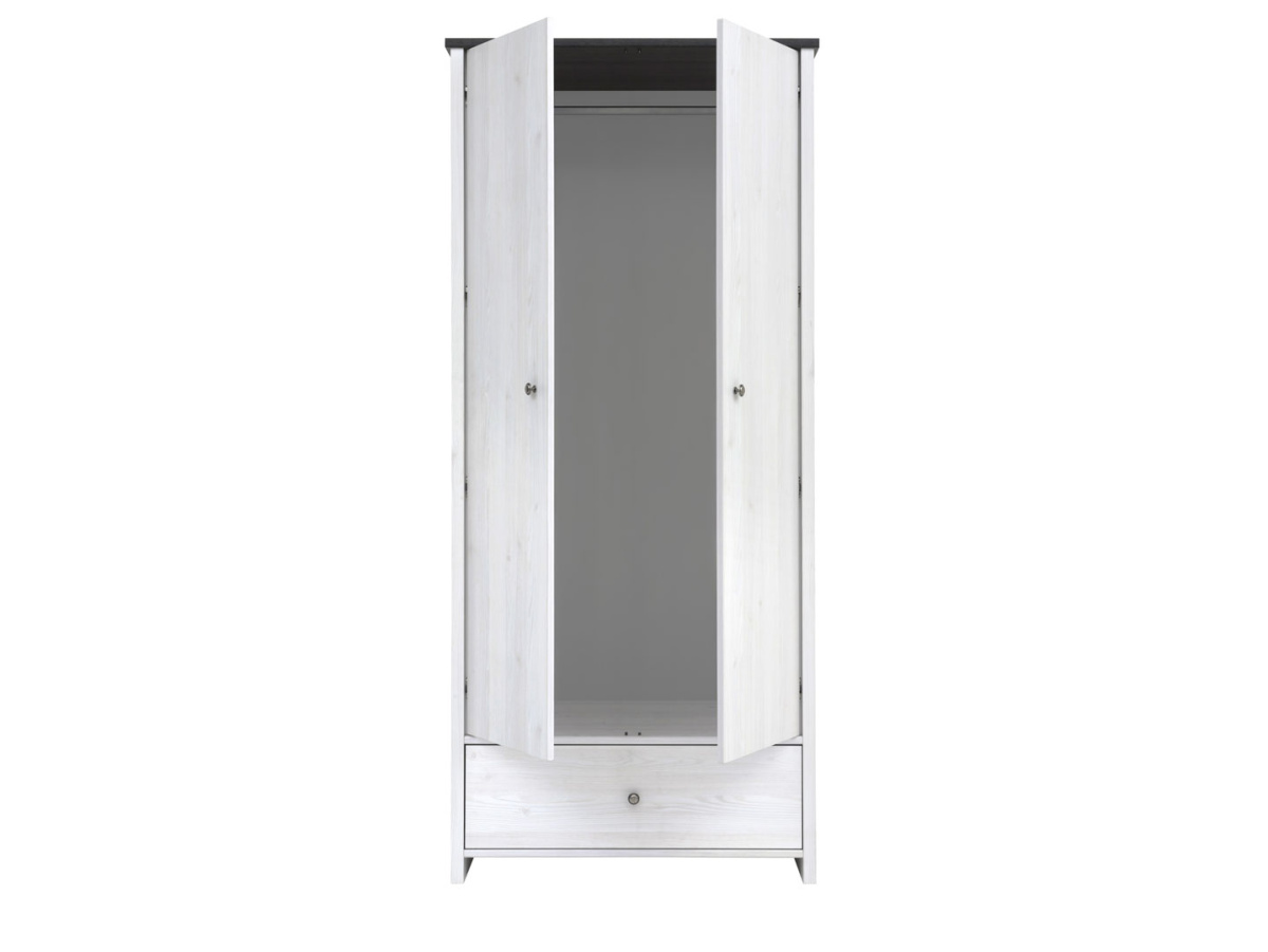 Платяной вместительный шкаф разделен на 2 отделения: отделение со стационарной металлической штангой для одежды и выдвижной ящик;