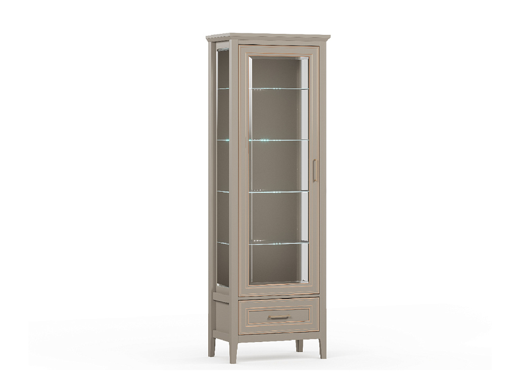 1 распашная дверь со стеклянной вставкой (стекло с фацетом) и 1 выдвижной ящик;
