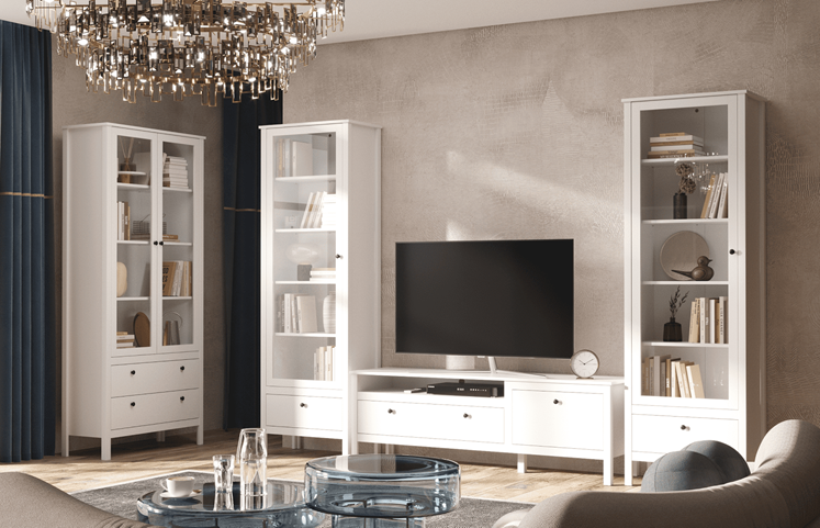 5 вместительных ниш; двери могут устанавливаться как с правой стороны, так и с левой; - выдвижные ящики на металлических направляющих; подсветка крепится к нижней части полки.