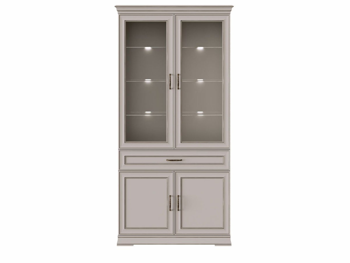 Коллекция выполнена в стиле неоклассика, цвет персидский жемчуг; ручки металлические матовая латунь. фасады МДФ рамка с имитацией патины. в витринах стекло с фацетом 4мм;петли и направляющие плавного закрывания. подсветка диодная свет нейтральный.