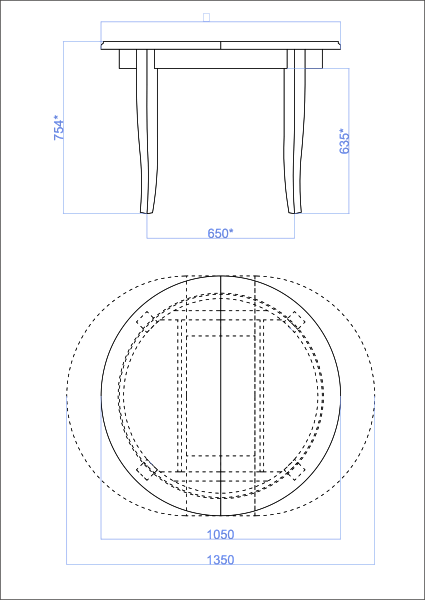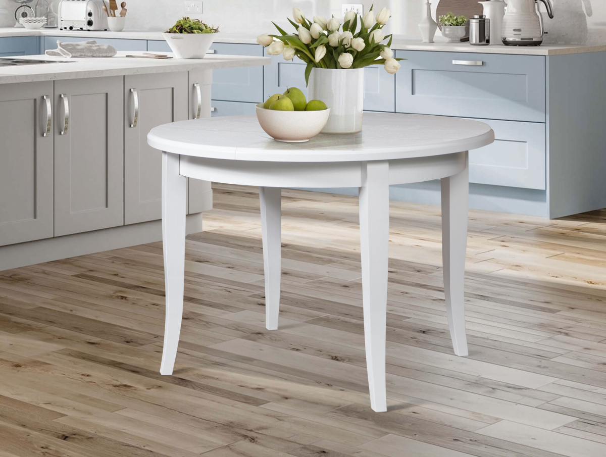 Аккуратный и компактный для ежедневного использования, он легко превращается в удобный стол для торжеств. Округлые формы придают интерьеру атмосферу роскошного классического интерьера, гнутые ножки добавляют шарма и изящества.