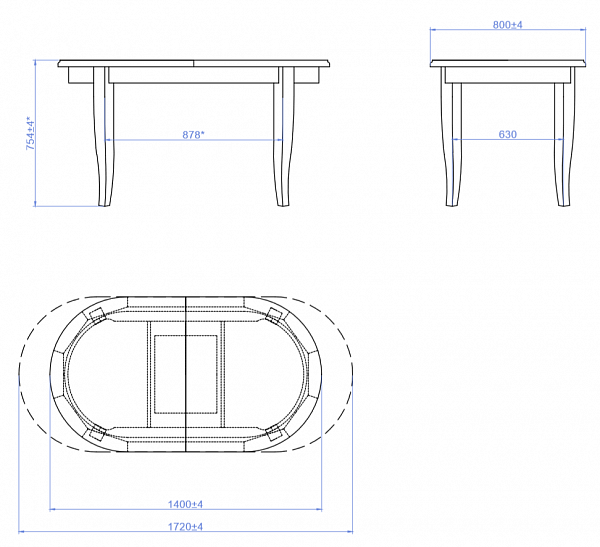 Механизм трансформации столешницы: синхронный, тип вставки: «Бабочка»