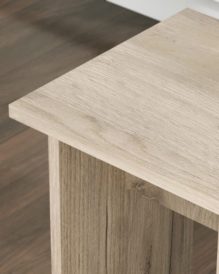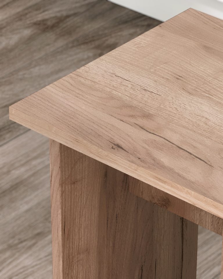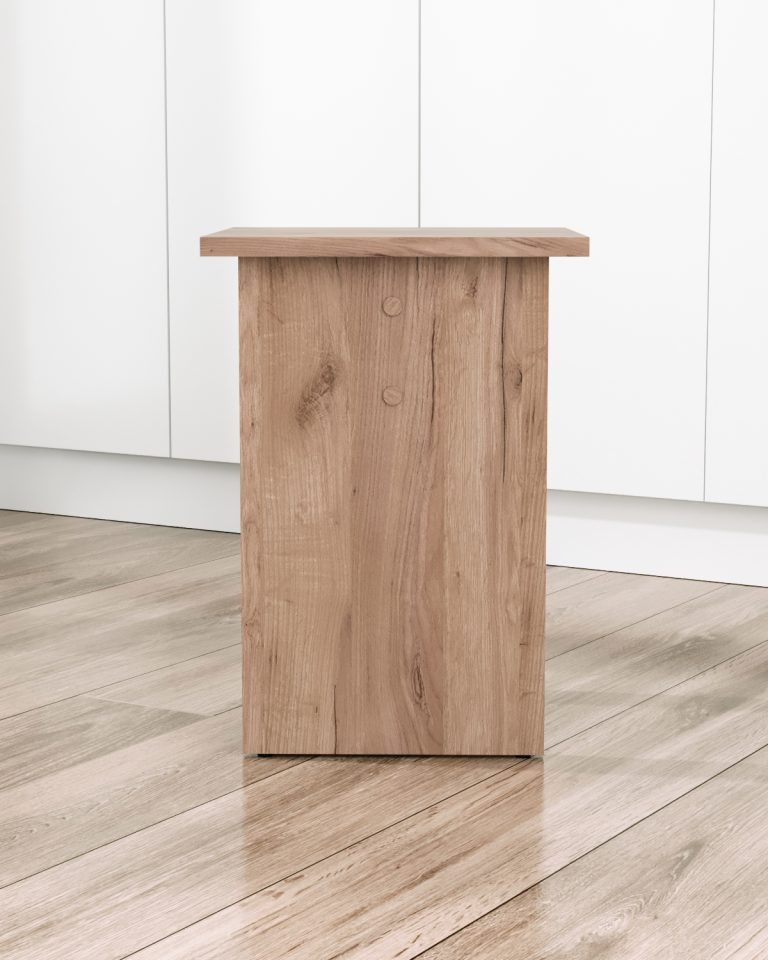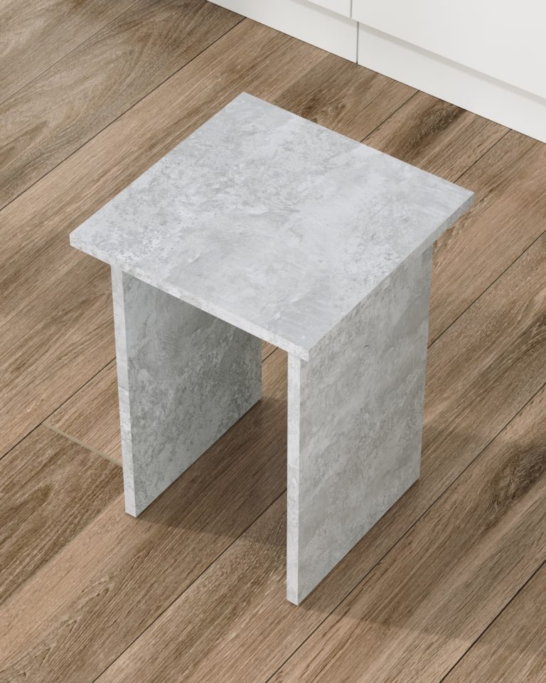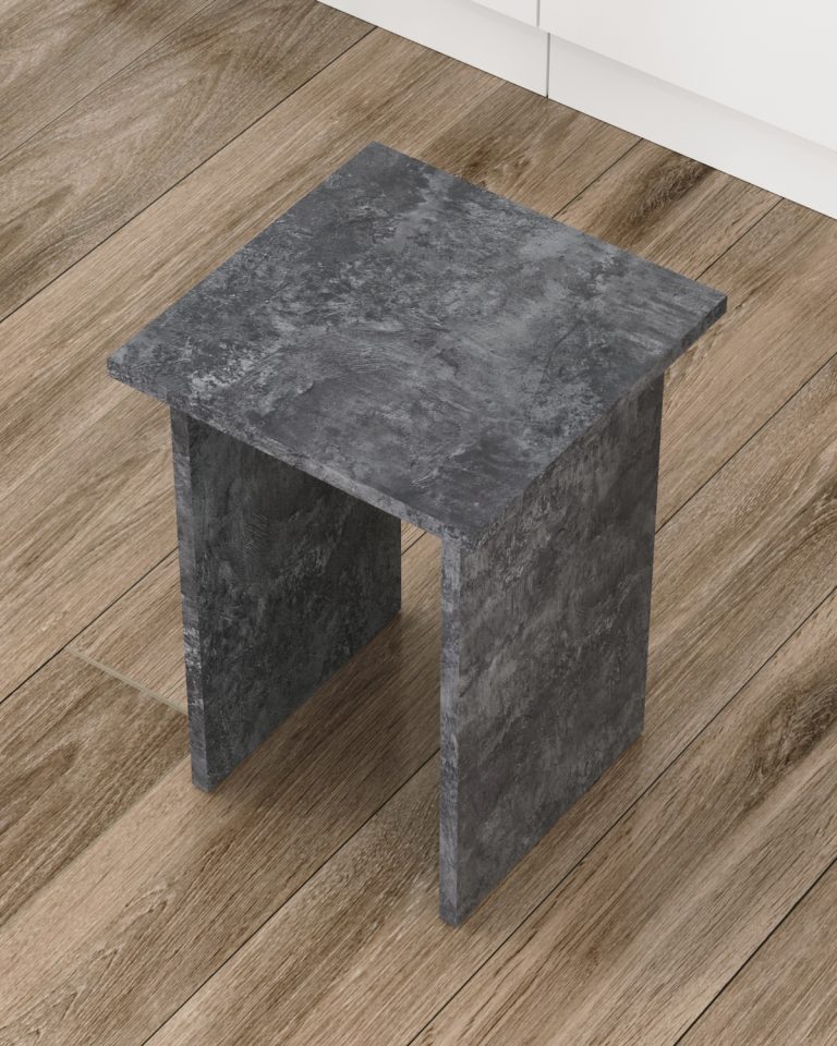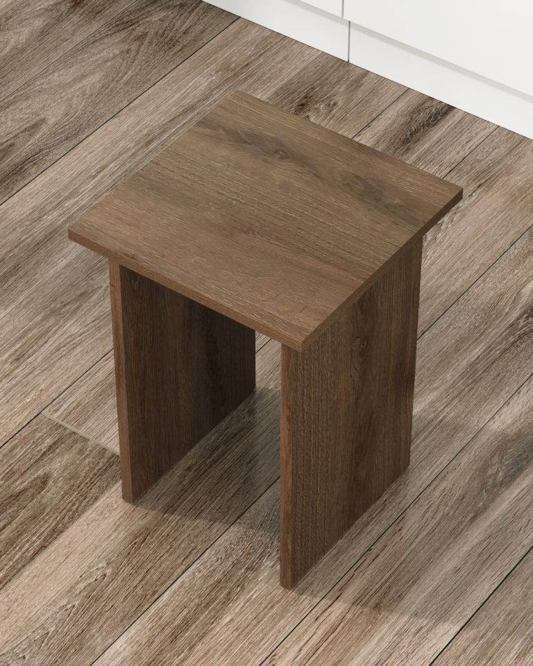 Табурет изготавливаются из распространенного и недорогого материала – ламинированное ДСП 16мм. Материал обладает повышенной устойчивостью к царапинам и повреждения. Края обработаны кромкой.