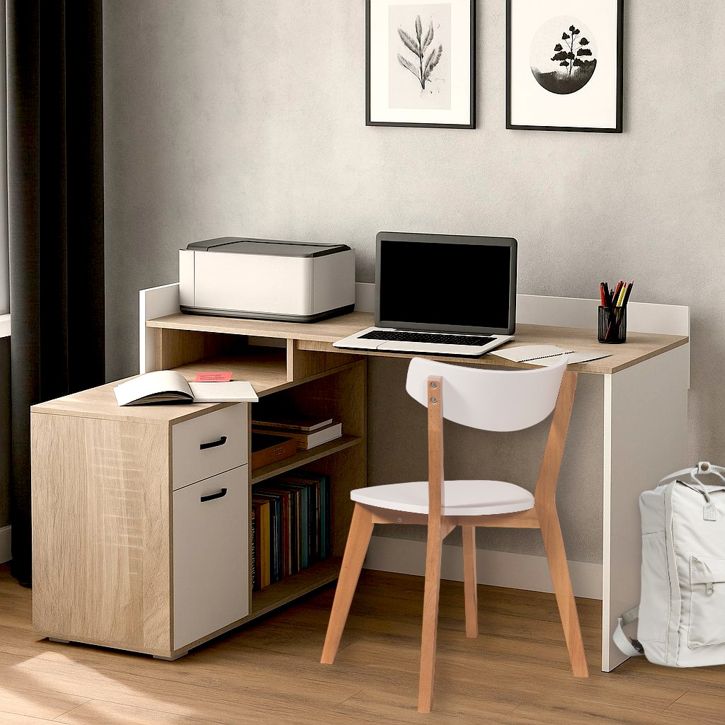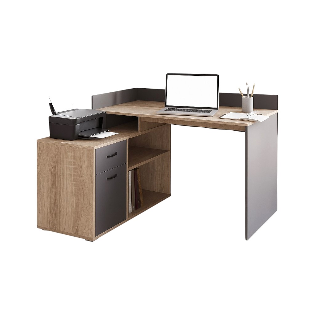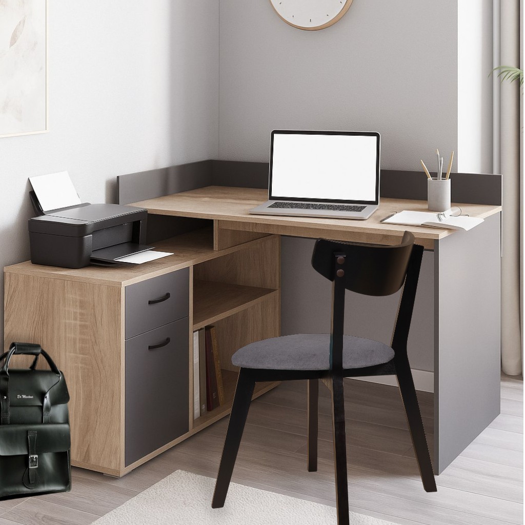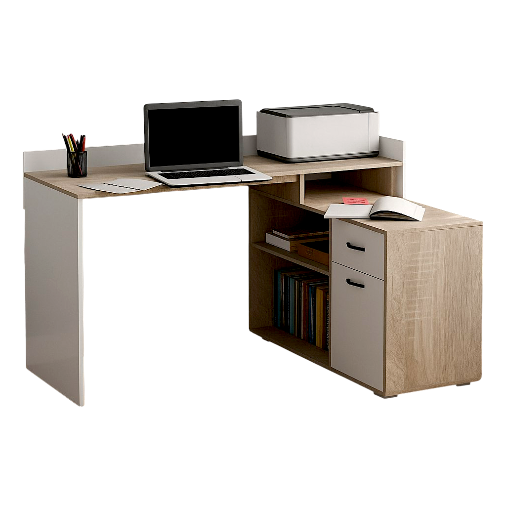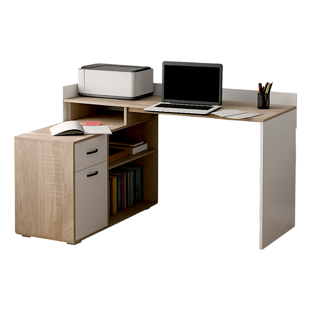 Этот универсальный стол легко адаптируется под любые потребности — его можно собирать как с левой, так и с правой стороны. Он оснащен просторным ящиком, распашной дверцей и открытыми полками для удобного хранения.