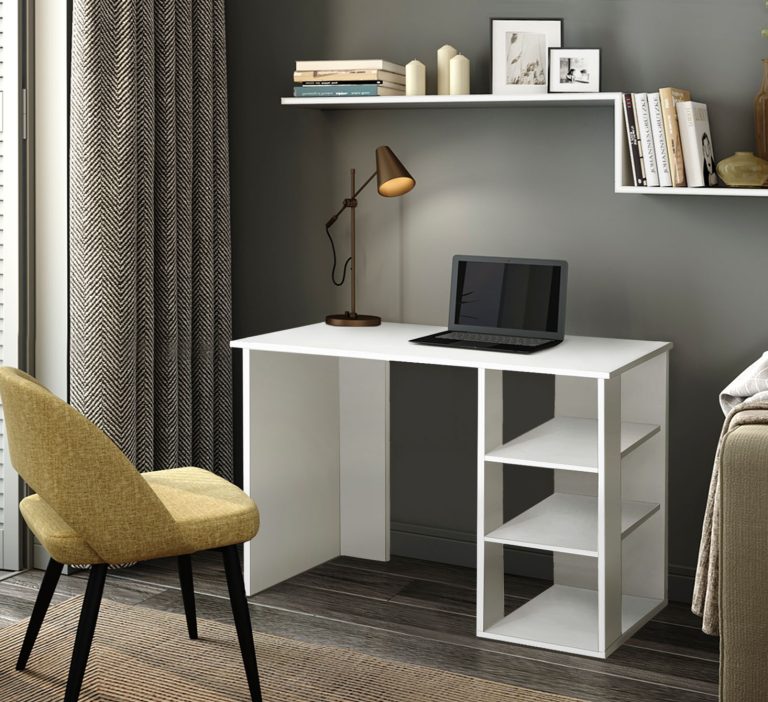 Компактный компьютерный стол с открытыми полками для дома и офиса.