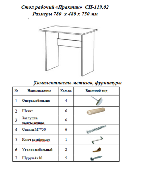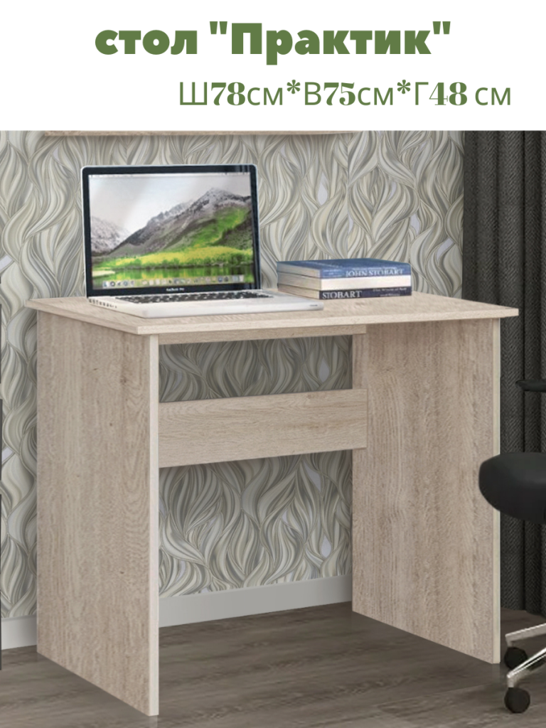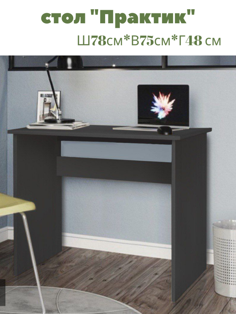 Компактные размеры позволят наш “Практик” использовать и как стол компьютерный в комнате подростка или в небольшом офисе. Его размеры – ширина 90см и глубина 57см позволят его использовать и в салоне как столик для маникюра. Стол можно скомпоновать с другой нашей мебелью: стеллажами, полками – они идеально впишутся в любой дизайн.