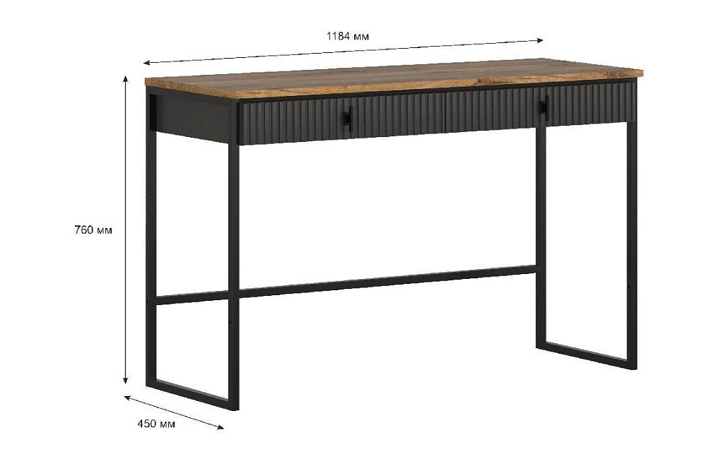 2 выдвижных ящика на шариковых направляющих частичного выдвижения с рифлеными фасадами;