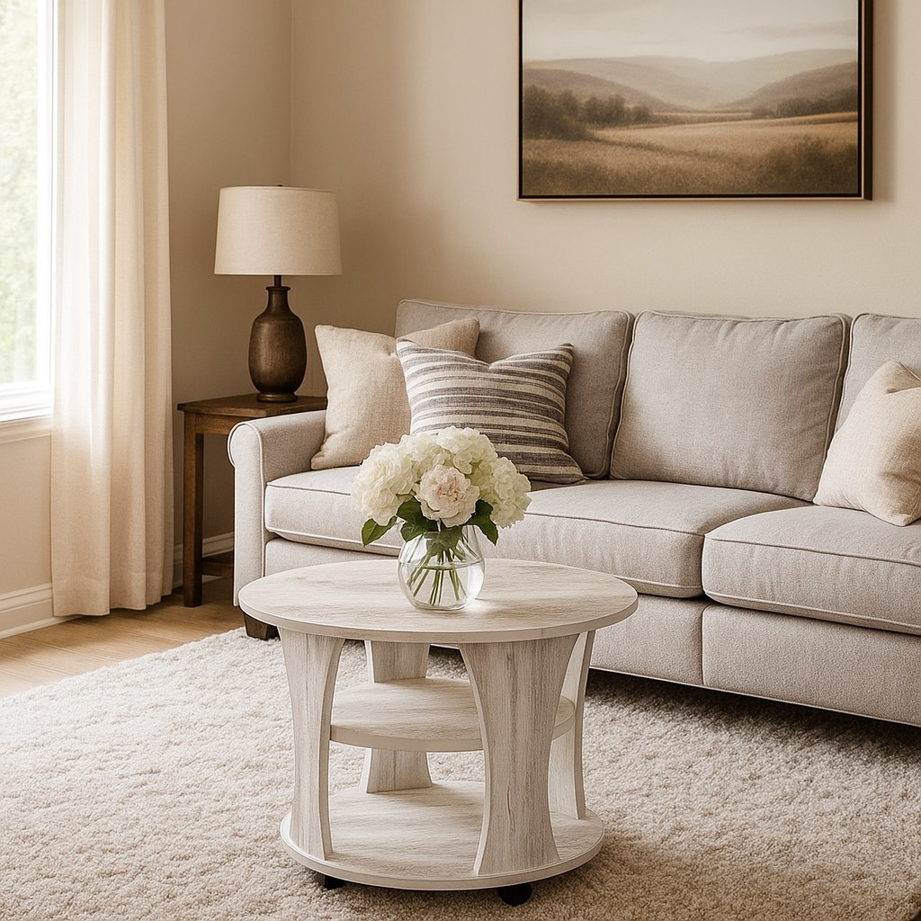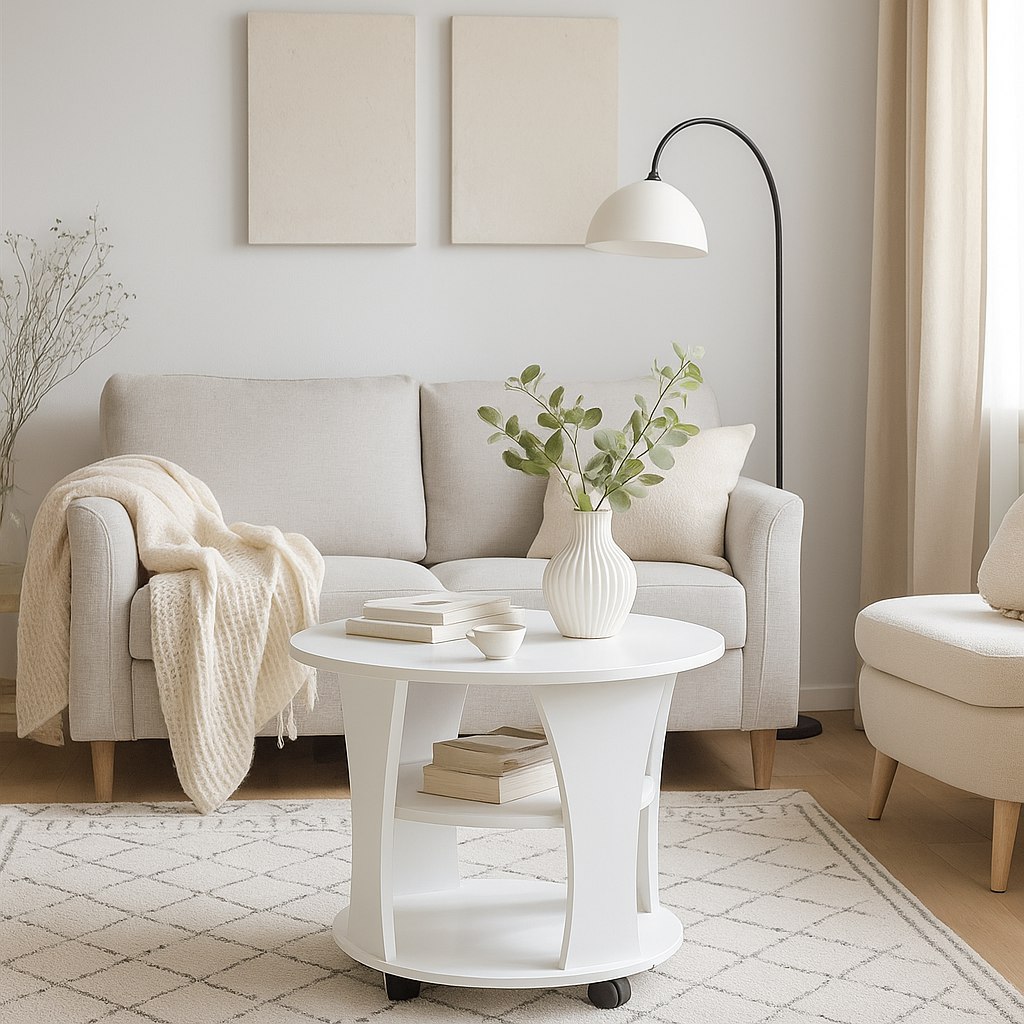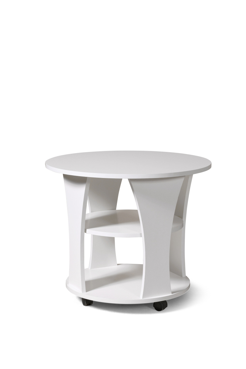 Яркий, красивый круглый журнальный стол создан для изысканного интерьера. Элегантный и изящный журнальный столик при кажущейся легкости имеет прочную конструкцию и надежный каркас. Стол очень интересно смотрится благодаря фигурным ножкам. Наличие полочек делает этот журнальный столик более функциональным.