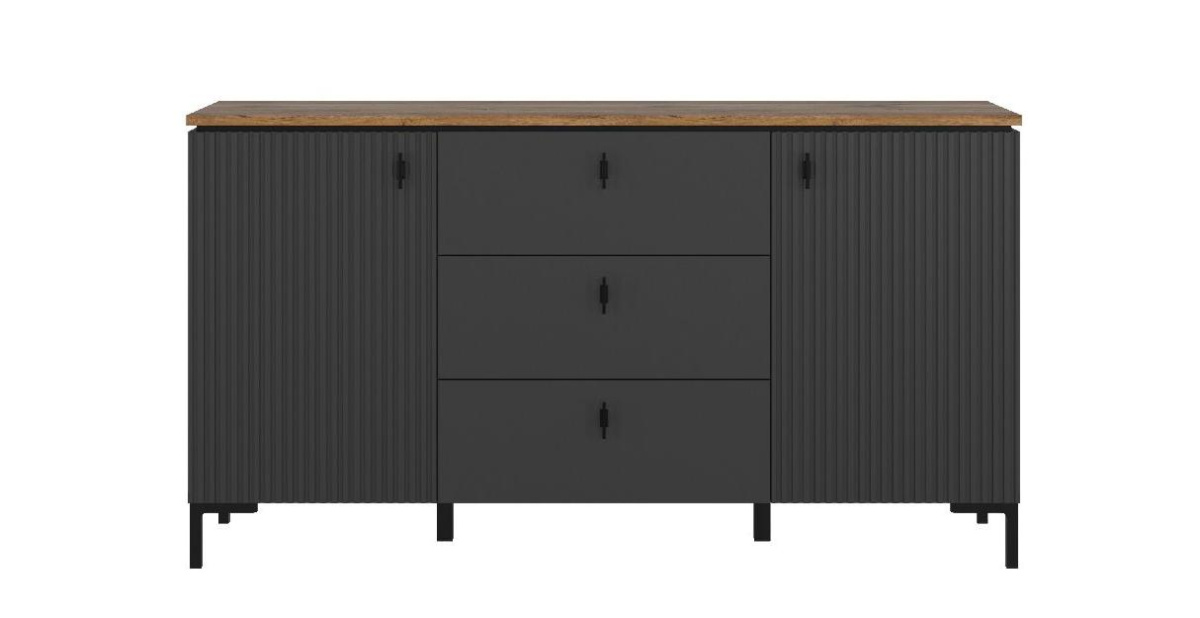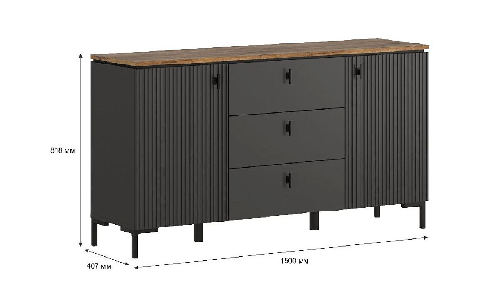 в центральной части 3 выдвижных ящика на шариковых направляющих частичного выдвижения с рифлеными фасадами;